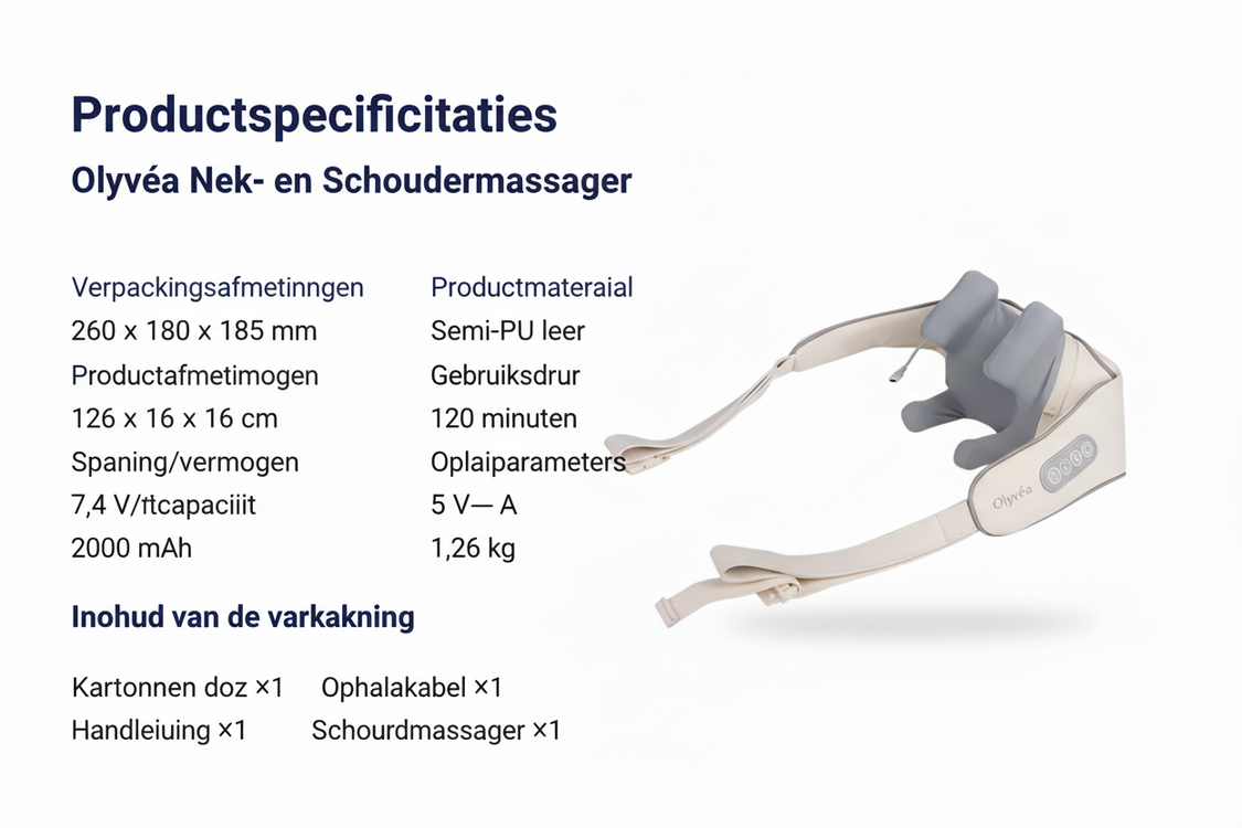 Ontworpen voor comfort en gebruik onderweg, geeft de Olyvèa u de mogelijkheid om overal te genieten van een rustgevende massage — of u nu thuis bent, op kantoor of onderweg.